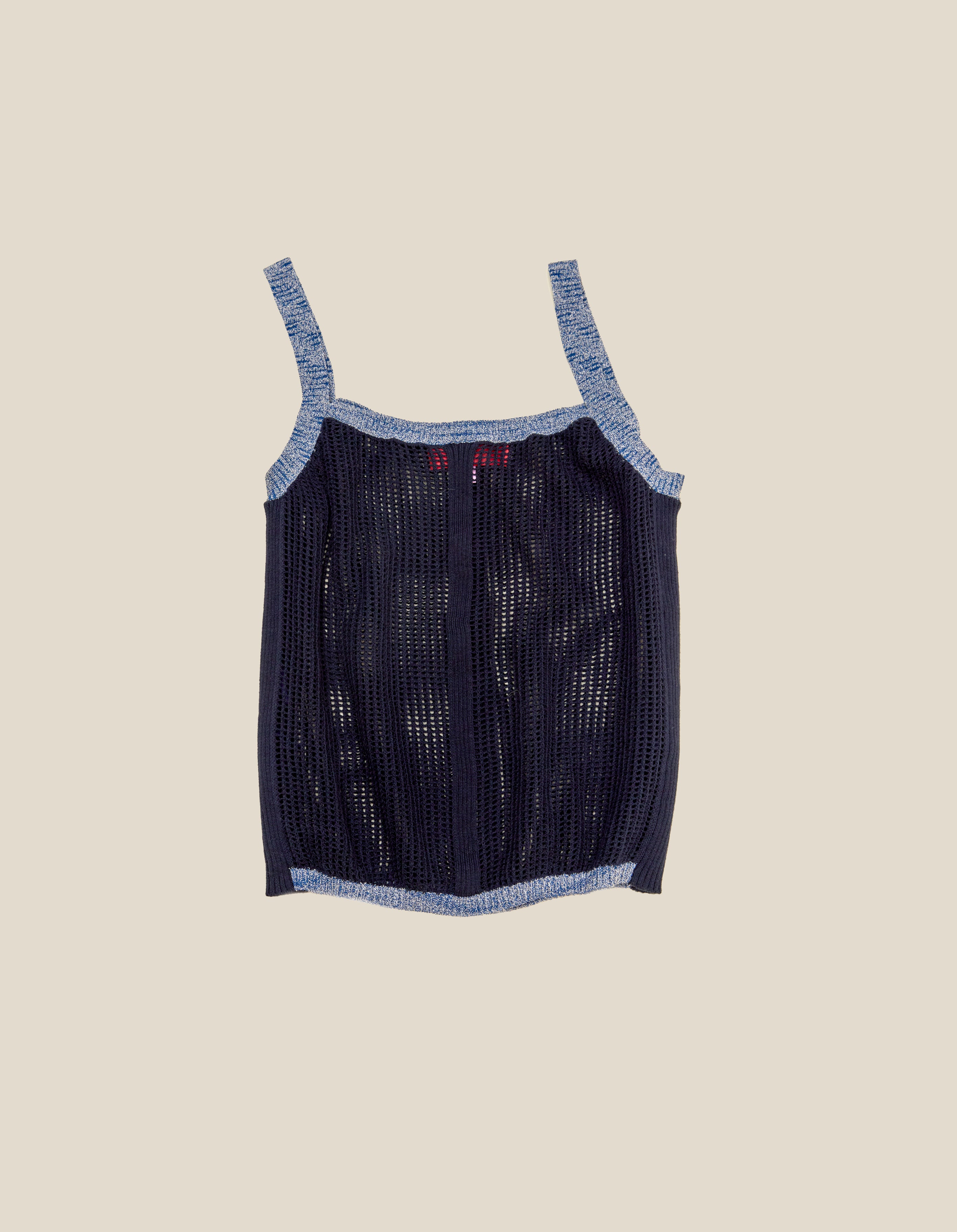 Relaxed-fit tank in a cotton-cashmere blend, featuring a knitted square mesh with rib stripe details.