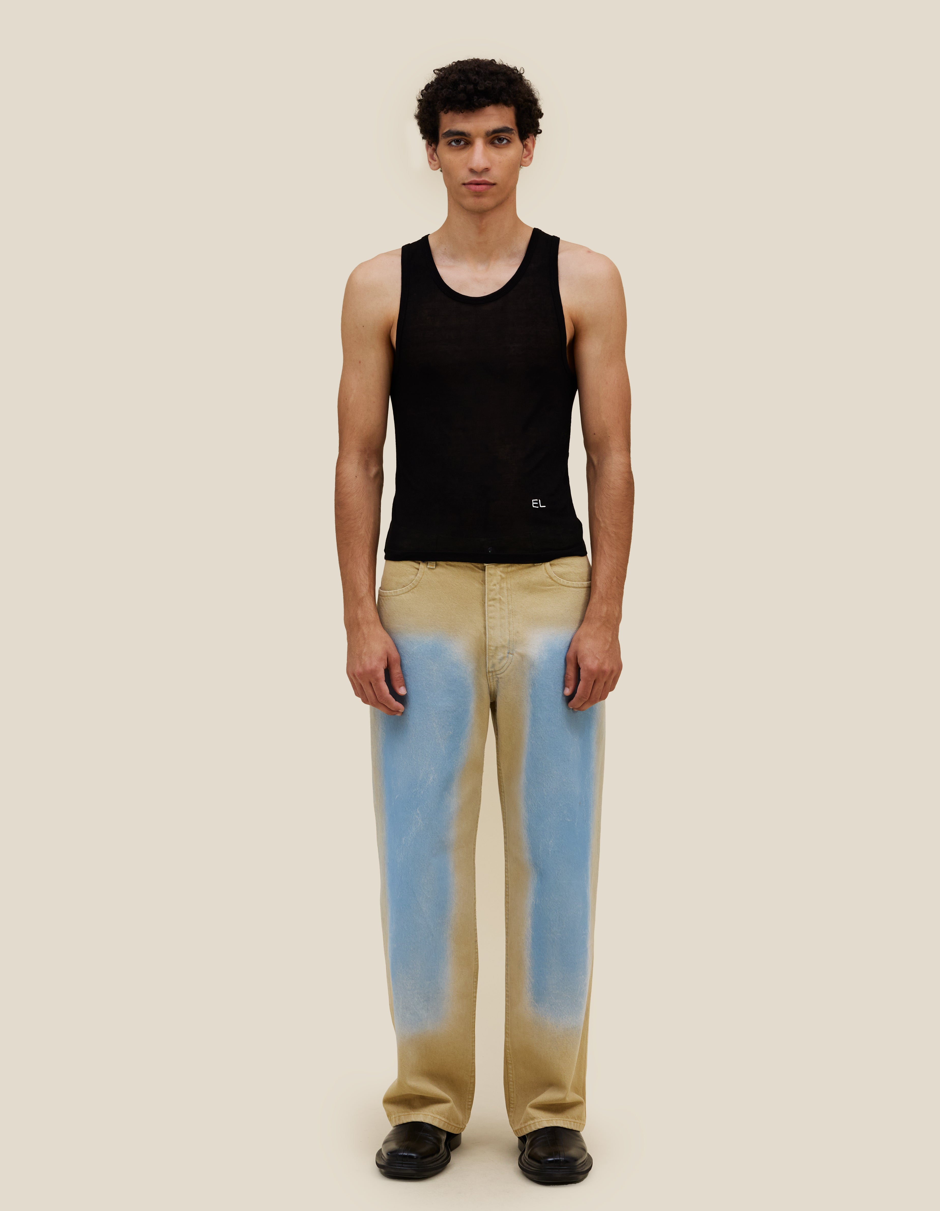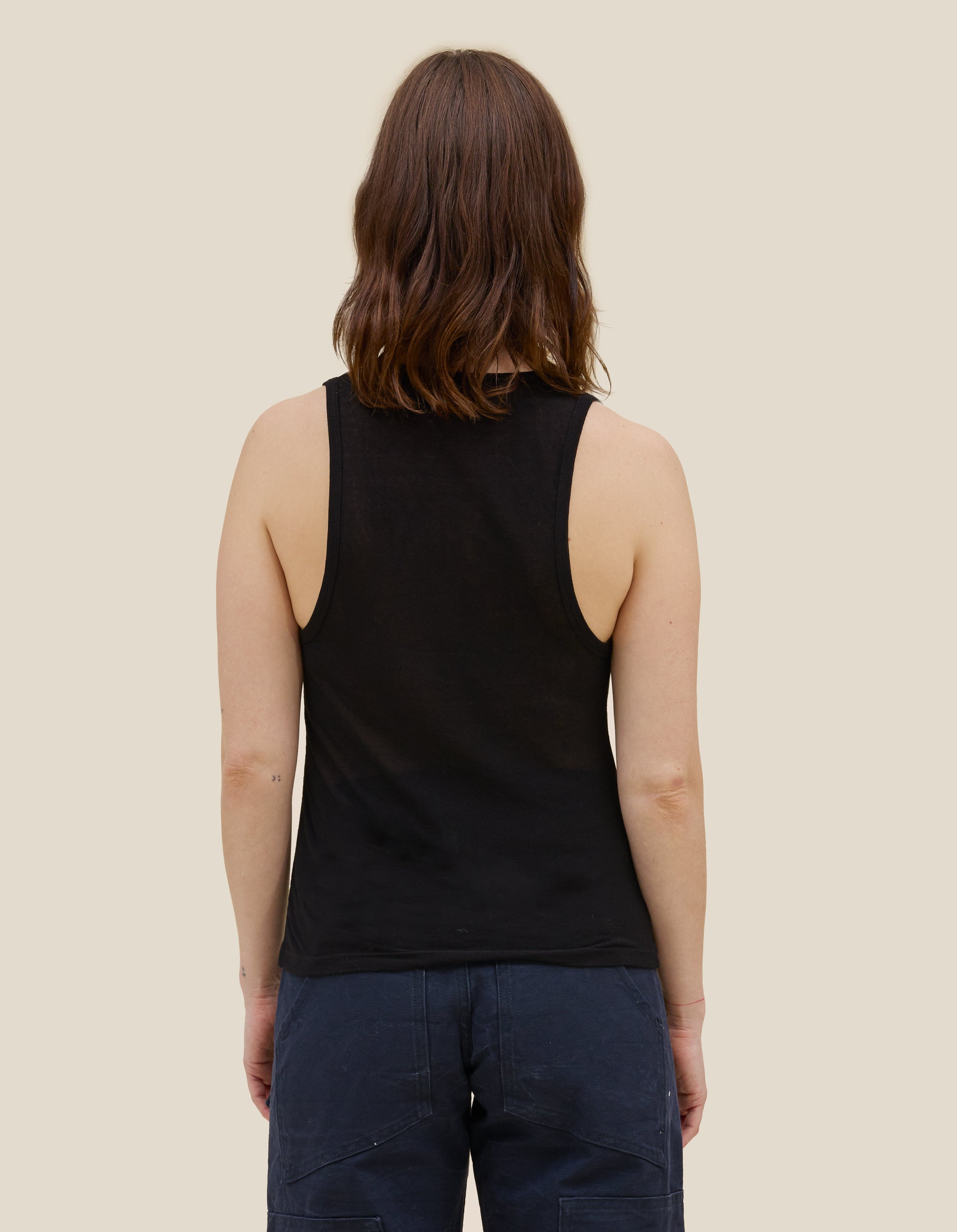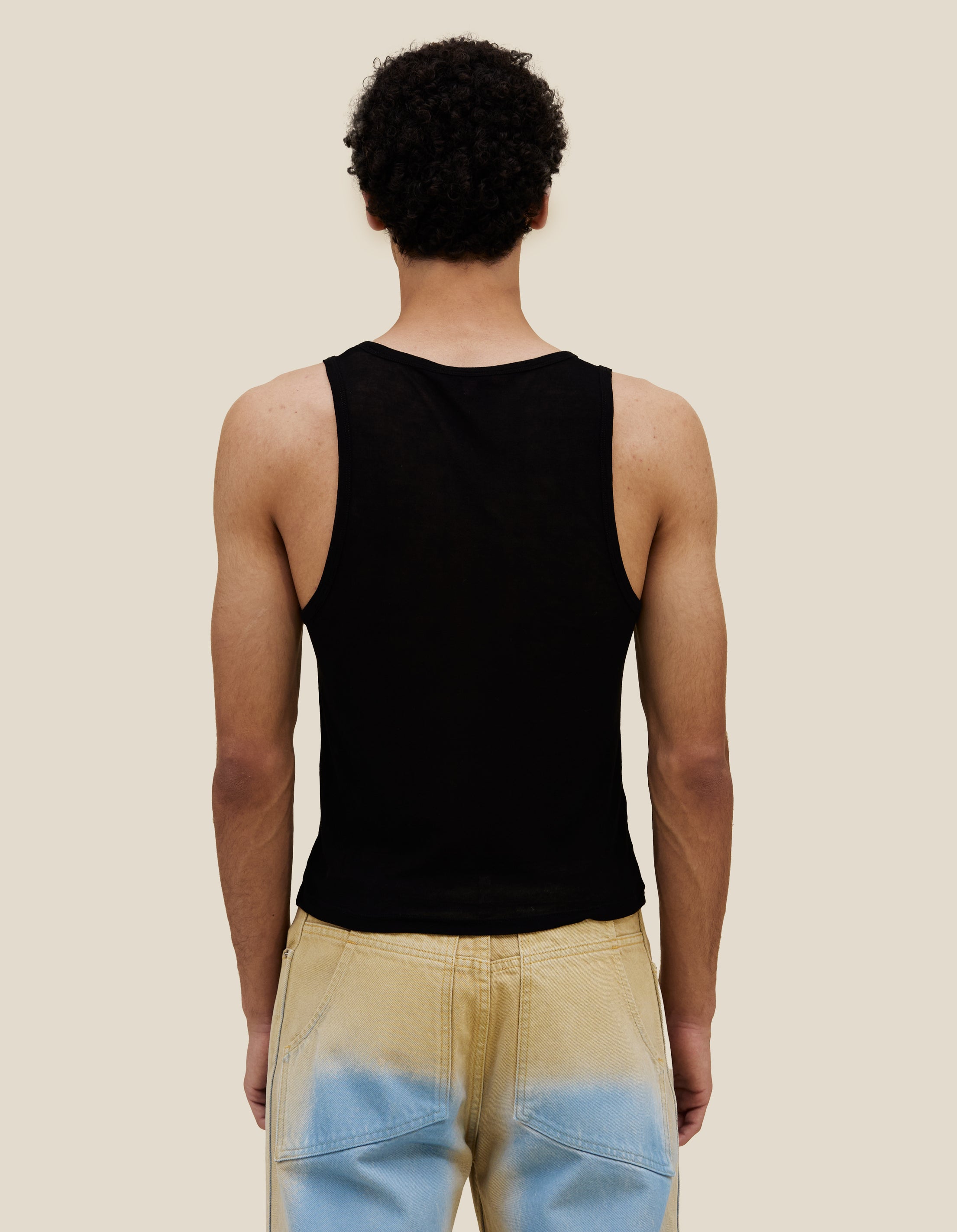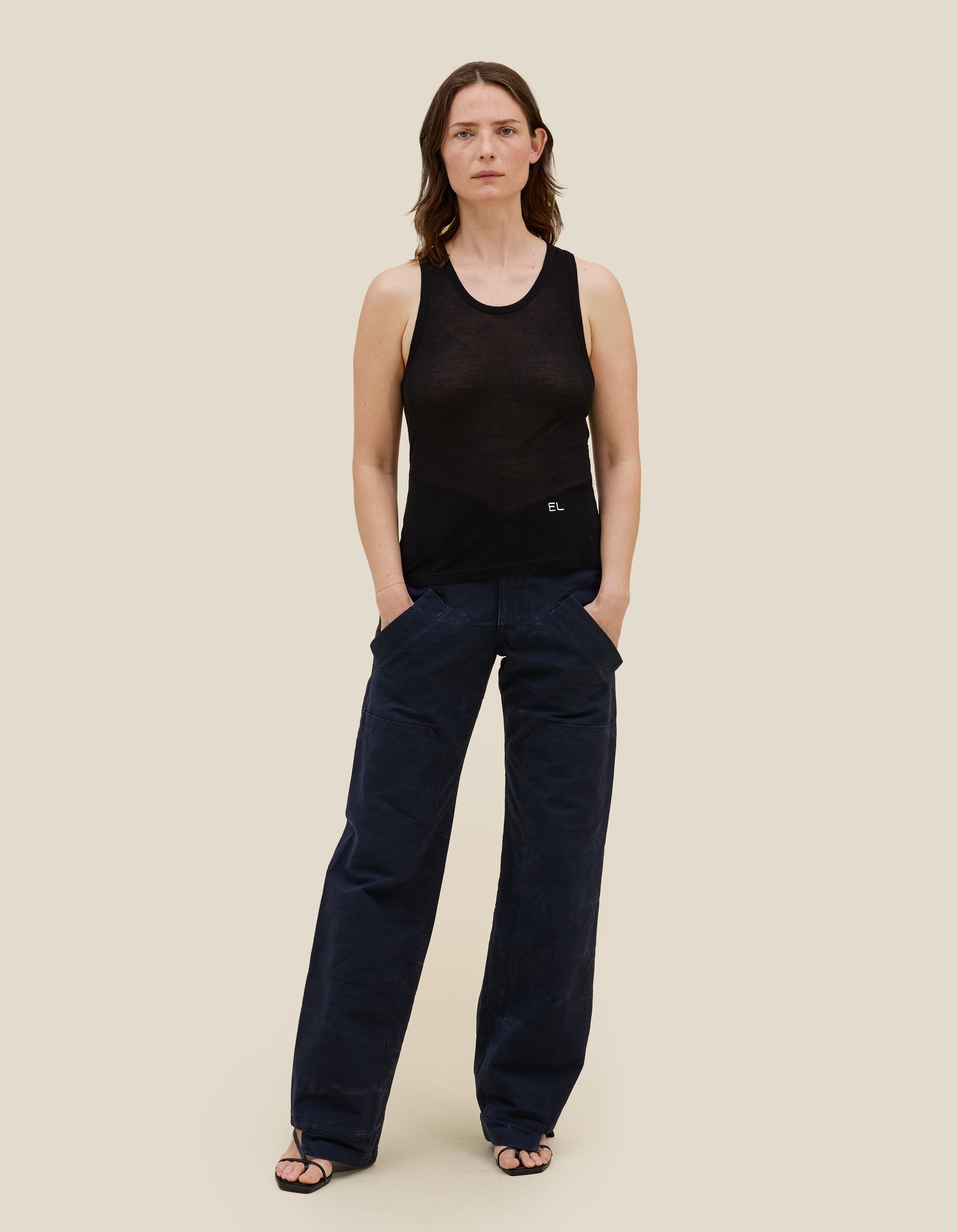 Slim-fitting tank in dry fine-gauge 1x1 cotton rib, featuring a red hand-embroidered "EL" logo on the left abdomen.